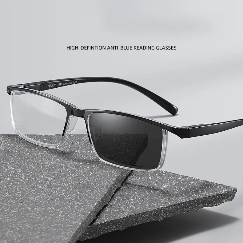 Anti-blue light progressive multifocal glasses designed for all-weather wear, ideal for both indoor and outdoor use. Perfect for individuals with presbyopia, these glasses are a reliable companion for reading, watching TV, playing games, traveling, social gatherings, or even activities like fishing.